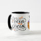 A Whimsical Halloween Typography Combo Mugs That Reads " Hocus Pocus I Need Coffee to Focus"