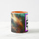 Purple, Orange and black Hocus Pocus, I need my coffee to focus coffee mug with wand, stars and moons.