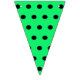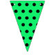 A neon green background with black polka dots... black centre circle with neon green lettering and orange accents...