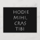 Hodie mihi cras tibi. It is my lot today, yours tomorrow. A latin quote of wisdom and philosophy that is still valid and true today.