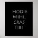 Hodie mihi cras tibi. It is my lot today, yours tomorrow. A latin quote of wisdom and philosophy that is still valid and true today.