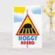 A cute, bright, and colourful hedgehog road crossing sign with clouds and a sun in the background. Thinking of You, paper greeting card. Hedgehog and hedgeHUGS themed card. Hoggy Ahead, text on the cover. Inside message can be personalised before checkout. Art, image, and verse copyright © Shoaff Ballanger Studios.