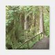 Sunlight streams through trees on a railed trail in the Hoh Valley Rain Forest, Olympic National Park, Washington