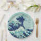 This is a drawing of blue, blue and aquamarine extreme sea waves with foam and spray, based on the work of Katsushiki Hokusai (1760-1849).