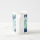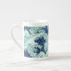 This is a pattern of blue, cyan and aquamarine sea extreme waves with foam and splashes, based on the work of Katsushika Hokusai (1760-1849).