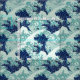 This is a pattern of blue, cyan and aquamarine sea extreme waves with foam and splashes, based on the work of Katsushika Hokusai (1760-1849).