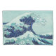 This is a drawing of blue, blue and aquamarine extreme sea waves with foam and spray, based on the work of Katsushiki Hokusai (1760-1849).