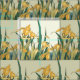 Yellow Irises and Grasshopper - This image is based on a Katsushika Hokusai vintage antique art print from the 1820s. The painting shows a grasshopper in a garden of yellow iris flowers. Graphic art asian japanese design.