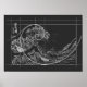 Another version from the series "Hokusai Meets Fibonacci." Fibonacci spiral superimposed on "The Great Wave" by Hokusai. Black and white, linear. Fibonacci sequence, golden ratio fascinating artists and scientists for centuries.