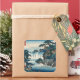 Hokusai Ukiyo-e Japanese Waterfall Landscape Blue Square Sticker