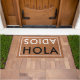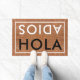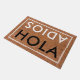 Welcome doormat with hello and goodbye in Spanish. The hola and adios doormat with a coir print background looks modern and rustic.