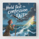 This powerful wall clock features a determined figure steadfastly holding a thick rope amidst turbulent ocean waves, looking towards a guiding lighthouse. The bold scripture, "Hold Fast the confession of our FAITH. - Hebrews 10:23," is prominently displayed above. With its dynamic, textured artistry and clear numerals, this timepiece serves as a constant, inspiring reminder to firmly maintain one's spiritual convictions, even amidst life's storms, guided by divine light.