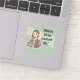 This funny overthinking quote sticker features a cute illustrated woman holding a retro telephone, paired with a relatable and sarcastic message about overthinking decisions. The soft pastel green background and friendly cartoon style give the design a cozy, humorous feel. Perfect for anyone who overthinks, loves witty quotes, or enjoys relatable humor. A fun decorative sticker for laptops, planners, notebooks, phones, or gift packaging.