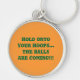 "Hold Onto Your Hoops...The Balls Are Coming" Original Slogan Quote text saying design. Get ready for the big basketball games & have fun with this humourous Keychain for male or female with the look of funny bouncing eyeballs on letters! Shown on an orange background with green letters. Click Customise It to change colours to your favourite teams colours, if you wish. Original Slogan Design © 2012 TamiraZDesigns.