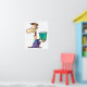 A man standing holding a box that has the word quality on it. This design looks really effective on this Poster