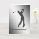 The image is a silhouette of a golfer taking a swing. What greater feeling for the golfer than standing on the first tee of a favourite golf course. This is an image sure to please the golfer whether pro or weekend hacker. Feel free to alter the verse on the inside of the card to suit your needs.