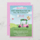 You will so enjoy sending out this charming and unique invitation - with that wonderful golf cart and gold and pink balloons-- completed with her script name. Any design questions just send a chat or an email to charmdesignstudio@rcn.com and we'll be delighted to assist.