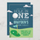 A colourful 'Hole in One' Golf themed first birthday invitation to help celebrate your little boy's first birthday. Colour palette features shades of green against a deep blue sky. Please message me for custom requests.
