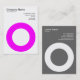 A business card template with a holed circle or 'O' symbol on the front. Company name, business type and address on the front with name, job title, telephony, web and email addresses on the back, with a similar layout on a grey background with a repeat of the front symbol in white. This card can also be further customised.