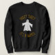 Halloween humour for anyone who's been stuck for a costume. Just grab some bedding, cut a couple of holes and ... holey sheet ... It's a ghost! A black ladies sweatshirt featuring our cute cartoon ghost with its classic Dad pun caption.