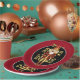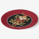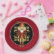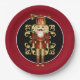 Holiday paper plate shown with a festive Christmas nutcracker print. Plate size 9" Plate color Garnet