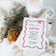 This chic and elegant holiday bridal shower invitation features a hand drawn, wavy illustrated red frame with a bow, and stylish handwritten dark green and red script on a white background. Perfect for a Parisian or French style wedding shower invitation during the Christmas season.