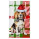 Dog lovers will adore receiving or giving this cute and funny holiday gift bag featuring an adorable Beagle dog in a Santa hat, on a green and red seasonal plaid patterned background.
