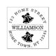 A circular personalised self-inking stamp design featuring bells above and below your family name and encircled by your address details. Ideal for adding an extra hand stamped touch to your holiday cards.