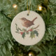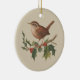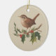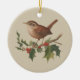 Holiday Bird Wren on Holly Branch Christmas Nature Ceramic Ornament