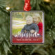 Holiday Blessings | Holiday Ornament with Photo - Red. Elke Clarke © Other styles and colours available at www.zazzle.com/epclarke. White script font with the word " Blessed" with hearts photo overlay design with a red ombre effect. A perfect way to showcase your treasured family photo. Find matching holiday greeting card in our shop.