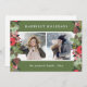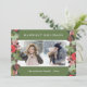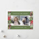 Festive Christmas greeting features a colourful winter botanical frame and two photos on a green background, with Happiest Holidays and your name in a simple and classic typography.