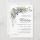 A simple sprig of pine, mistletoe and red and deep blue berries accent this tasteful elegant Holiday Party Invitation. It's a wonderful choice for business social events during the Christmas holiday season. The text pairing combines elegant script type face with traditional serif type face for a beautiful combination. The back of the invitation is a matching berry red. You can edit this colour to any other colour if you desire. Personalise the text with your event details.