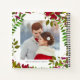 Beautiful Christmas holiday design features watercolor botanical greenery with photo and name.