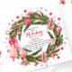 Holiday Brunch Elegant Christmas Floral Wreath Invitations feature a stylish watercolor floral wreath with Christmas gifts, candy canes, decorations and bells in green and pink on a white background. Inside the wreath add your personalised information for your Christmas Party Invitations. Simply edit the text in the text boxes provided. Designed by ©Evco Holidays www.zazzle.com/store/evcoholidays