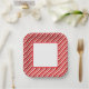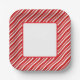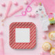 Party paper plate is shown with a festive holiday candy cane striped print.