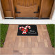 Doormat shown in black with a festive holiday candy canes print.