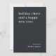 Send refined and professional greetings this season with this modern off-black business Christmas card. Featuring the quote “Holiday Cheer and a Happy New Year” in clean white typography, the portrait layout gives it a contemporary edge while keeping the message classic and elegant. Perfect for corporate mailers, staff notes, or client thank-you cards, this design can be easily personalised in Zazzle’s design tool by adding your company name, logo, or custom message to suit your brand. The dark charcoal tone adds a touch of sophistication that complements any business aesthetic. Printed on premium cardstock, this flat card is sleek, stylish, and designed to make your company stand out. A minimalist and timeless design that conveys gratitude and festive spirit with effortless professionalism.