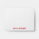A stylish modern holiday envelope with a bold retro typography quote "merry & bright" in bright red on a white background with a complementary feature colour on the inside. The greeting, address and name can be easily customised to suit your needs. A trendy fun design to stand out this holiday season!