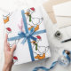 A drawing of an adorable cartoon duck wearing a Santa Claus hat and a scarf.