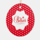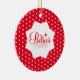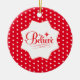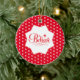 Christmas holiday tree ornament is shown in a red and white polka dots print with Believe.