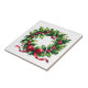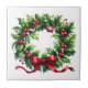 Holiday season ceramic tile is shown with a festive holly berry wreath print.