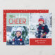 Affordable custom printed holiday photo cards with simple templates for customisation. This modern design has a festive mix of typography in red, green and white on a mint blue background. The wording says "Holiday Cheer". Personalise it with your photos and add your family name and the year. Reverse side has space for additional photos and text. Use the design tools to edit the text, add more photos and create a unique one of a kind Christmas photo card design.