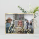 Holiday cheer with Moody Overlay family photo collage with Gold Brush Script Lettering is simple trendy and stylish! You can make any photos striking with the dark fading ombre gradient overlay which highlights text, and gold hand lettered, handwritten brushed look. Personalise it with your 5 custom family pictures. Shown in faux gold foil lettering. - Christmas Holiday Photo Cards!