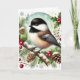 Bring a touch of nature’s charm to your holiday decor with this delightful watercolor Christmas design featuring a cheerful chickadee perched on a snow-covered branch. Surrounded by festive holly leaves, vibrant red berries, and rustic pine cones, this little bird embodies the quiet beauty of winter. Soft snowflakes gently fall in the background, adding a magical, peaceful ambiance.