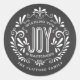 WISHING YOU JOY & HAPPINESS: Bright and cheerful whimsical round chalkboard style Christmas ornament with retro banner, vintage black and white typography, and fancy swirls. Personalise this decorative holiday ROUND label with your family name or custom greeting. Perfect for sealing envelopes or as gift tags. Contemporary, classic, modern and stylish way to send trendy happy winter holiday wishes to all your friends and loved ones with rustic and traditional charm.
