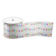 This holiday satin ribbon is shown in white with a Christmas lights print design.
