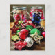 Festive Holiday Christmas Ornaments Xmas postcard with brightly coloured ornaments inside mason jars on a rustic wood surface. A great Christmas postcard from the country.