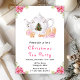 This elegant and festive holiday tea party invitation features a teapot and gingerbread cookies. In the corners are beautiful pink poinsettia flowers. The text combines handwritten script and sans serif fonts for a stylish and modern look. This is perfect for a Christmas brunch or tea party.