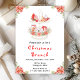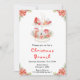This elegant and festive holiday brunch invitation features a cake stand with gingerbread cookies, macarons, candy, hot cocoa and a teapot. In the corners are beautiful red poinsettia flowers. The text combines handwritten script and sans serif fonts for a stylish and modern look. This is perfect for a Christmas brunch or tea party.