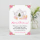 This elegant and festive watercolor Christmas card can be personalised with your family name. It features a teapot and gingerbread cookies. In the corners are beautiful pink poinsettia flowers. The text combines handwritten script and sans serif fonts for a stylish and modern look.